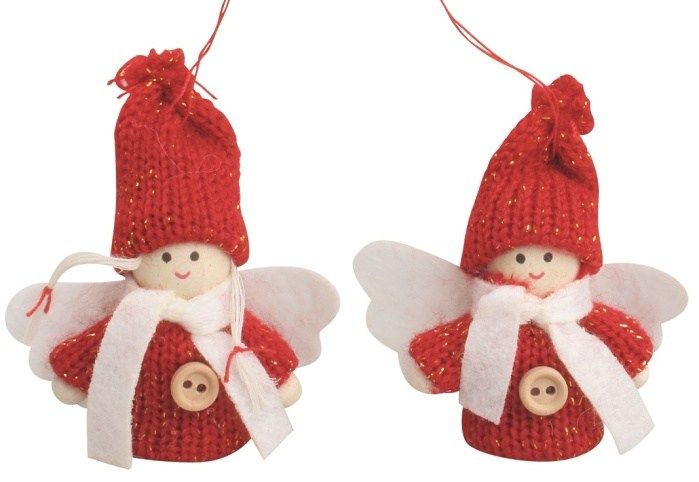 Anděl s dřevěným knoflíkem na zavěšení 7,5 cm červený