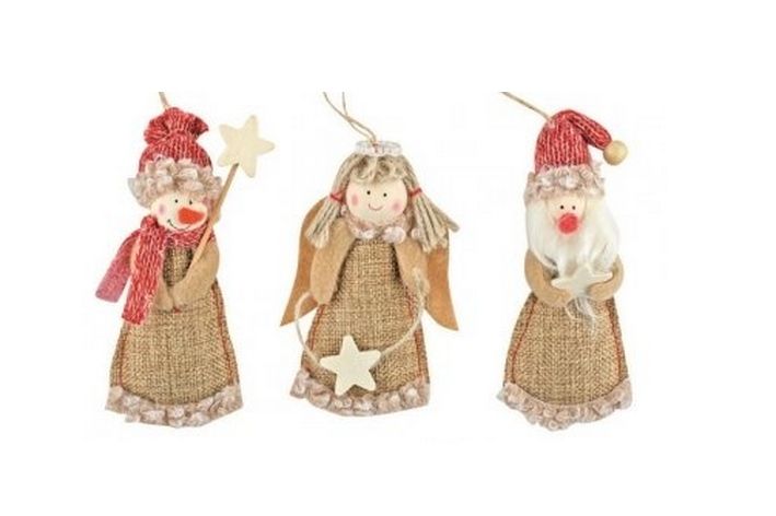 Anděl, Santa,sněhulák z juty na pověšení 13cm