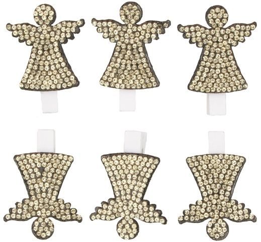 Anděl se zlatými kamínky na kolíčku 3,5 cm 6 ks