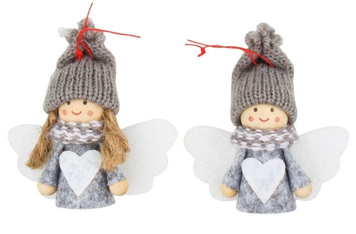 Anděl šedý 7 cm na zavěšení