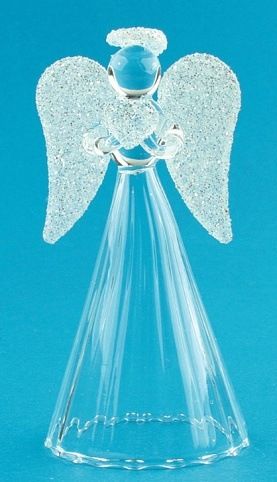 Anděl skleněný na postavení s bílými křídly 9 cm