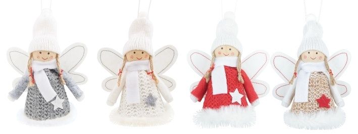 Vánoční dekoraceNa pověšení i na zavěšeníPletené prvkyPevný anděl v pletených šatech s krásnými křídly s vyšívaným lemem.