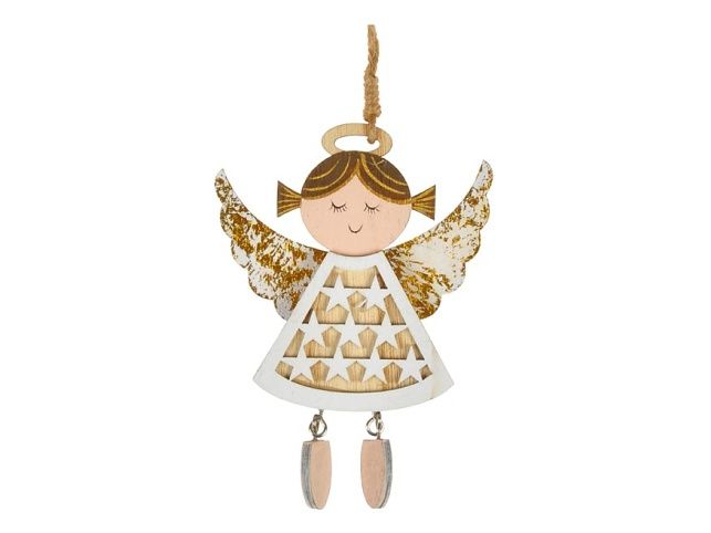 Vánoční dekorace - anděl na pověšení. Vyrobeno převážně ze dřeva.