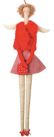 Andělka látková na zavěšení, v červené vestičce 43 cm