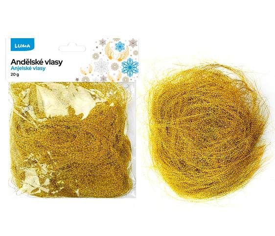 Dekorační andělské vlasy- vhodné ke zdobení věnců, vazeb, nebo vánočního stromečku- barva: zlatá- gramáž: 20g