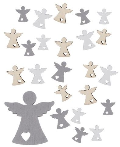 Andílci mix barev a velikostí ze dřeva, 24 ks v krabičce