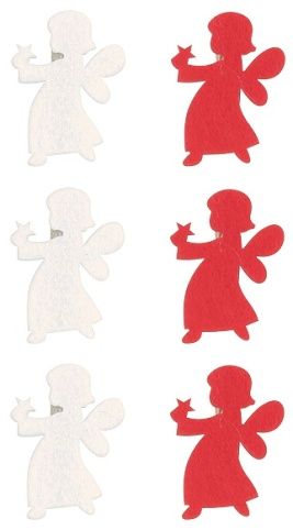 Andílek filcový na kolíčku 5 cm, 6ks, bílý a červený