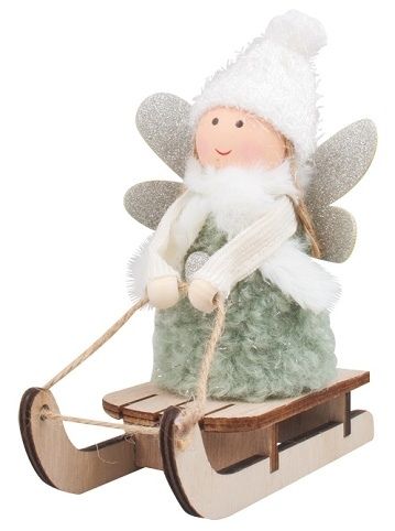 Andílek na saních v kožíšku 13 cm