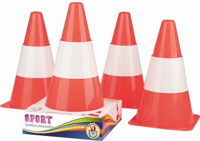 4 dopravní kužely s červeno-bílými pruhy. Vyrobeno z kvalitního plastu v Itálii. Rozměry: 7,5 x 17,5 x 29 cm ( d x š x v). Váha: 0,75 kg. Doporučený věk od 12 měsíců.