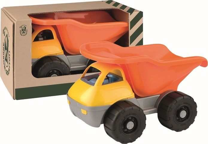 Obří plastové auto dumper v hnědé ekologické krabici. Vyrobené z kvalitních plastů v Itálii. Nosnost vozidla max 100 kg. Rozměry balení: 51,5 x 42 x 26 cm (d x š x v). Váha: 1,87 kg. Doporučený věk od 10 měsíců.