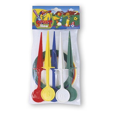 Veselá hra házení kroužků na cílové hroty pro malé i velké. Hra podporuje motoriku, soustředění a trpělivost. Vyrobeno z kvalitních plastů v Itálii. Obsah balení: 5 házecích kroužků, 5 obodovaných hrotů. Baleno v průhledném sáčku 18 x 37 cm. Váha: 0,18 kg. Doporučený věk od 36 měsíců.