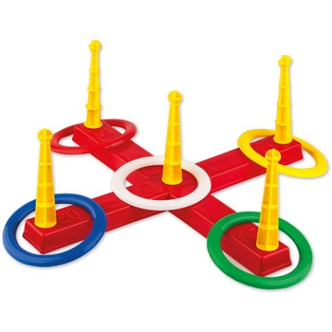 Veselá hra házení kroužků na kříž pro malé i velké. Hra podporuje motoriku, soustředění a trpělivost. Vhodné pro vnitřní i venkovní použití. Vyrobeno z kvalitních plastů v Itálii. Obsahu balení: Obodovaný kříž s 5 bodci a 5 házecích kroužků. Rozměry sestaveného výrobku: 47 x 47 x 17 cm (d x š x v). Baleno v síťce. Rozměry balení: 47 x 15 x 15 cm (d x š x v). Váha: 0,37 kg. Doporučený věk od 12 měsíců.