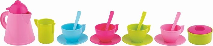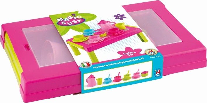 Kávová souprava se skládacím, úložným stolečkem, vyrobená z kvalitních plastů v Itálii. Souprava obsahuje: Konvici, 4 hrnečky s podšálky na kávu nebo čaj, 4 kávové lžičky, cukřenku s víčkem, konvičku na mléko a snadno rozložitelný stolek, který zároveň slouží i jako úložný box. Rozměry rozloženého stolku 41 x 26 x 22 cm (d x š x v), rozměry složeného stolku - boxu: 41 x 24,5 x 10 cm (d x š x v). Doporučený věk od 18 měsíců. Výrobce, italská firma Androni Giocattoli sídlící nedaleko Milána, se specializuje na výrobu plastových hraček na písek a zahradu a také stavebnic UNICO Plus již od roku 1974. Jejím mottem je heslo: Androni Toys: Kvalita vyrobená v Itálii. Používané plasty jsou pevné, ale zároveň pružné a při běžném hraní nedochází k jejich praskání. Vydrží i větší zátěž a proto jsou výrobky vhodné i do školek, kde téměř denně procházejí zatěžkávací zkouškou.