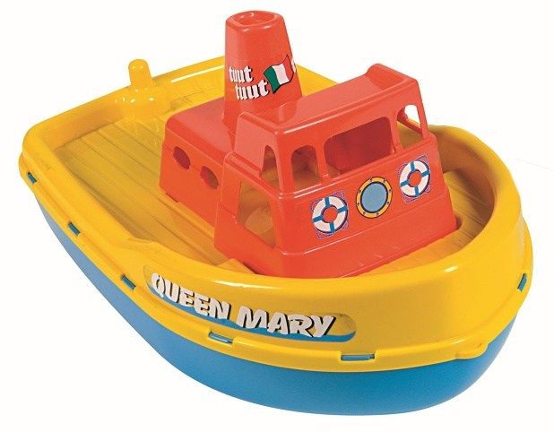 Loď se sirénou - remorkér Queen Mary, vyrobená z kvalitních plastů v Itálii. Při stisknutí trupu vydává zvuk sirény. Výška 17 cm, šířka 21 cm, délka 38 cm, váha 0,58 kg. Doporučený věk od 12 měsíců. Výrobce, italská firma Androni Giocattoli sídlící nedaleko Milána, se specializuje na výrobu plastových hraček na písek a zahradu a také stavebnic UNICO Plus již od roku 1974. Jejím mottem je heslo: Androni Toys: Kvalita vyrobená v Itálii. Používané plasty jsou pevné, ale zároveň pružné a při běžném hraní nedochází k jejich praskání. Vydrží i větší zátěž a proto jsou výrobky vhodné i do školek, kde téměř denně procházejí zatěžkávací zkouškou.