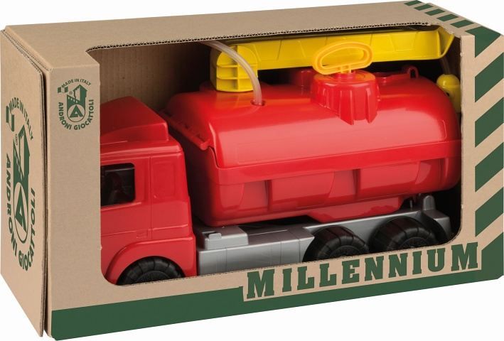 Velké plastové hasičské auto s ruční pumpou a funkční stříkačkou z řady Millennium v hnědé ekologické krabici. Vyrobené z kvalitních plastů v Itálii. Rozměry balení: 52 x 25,5 x 19,5 cm (d x š x v). Váha: 1,9kg. Doporučený věk od 36 měsíců. Výrobce, italská firma Androni Giocattoli sídlící nedaleko Milána, se specializuje na výrobu plastových hraček na písek a zahradu a také stavebnic UNICO Plus již od roku 1974. Jejím mottem je heslo: Androni Toys: Kvalita vyrobená v Itálii. Používané plasty jsou pevné, ale zároveň pružné a při běžném hraní nedochází k jejich praskání. Vydrží i větší zátěž a proto jsou výrobky vhodné i do školek, kde téměř denně procházejí zatěžkávací zkouškou.