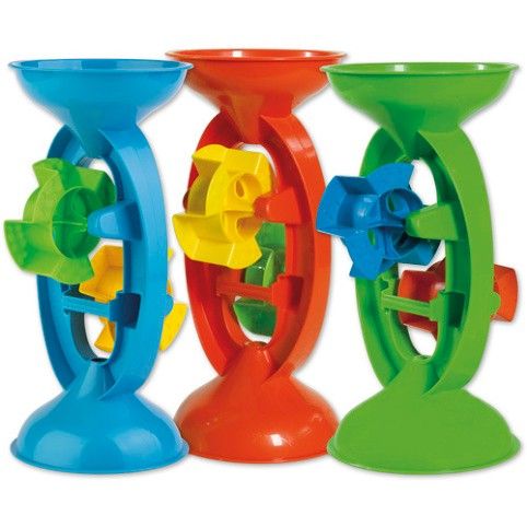 Mlýnek na písek a vodu se dvěma lopatkovými koly, vyrobený z kvalitních plastů v Itálii. Mlýnek: výška 28 cm, váha 0,20 kg. Doporučený věk od 12 měsíců.
