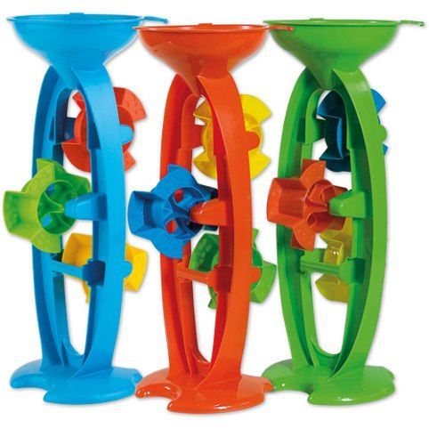 Mlýnek na písek a vodu se třemi lopatkovými koly, vyrobený z kvalitních plastů v Itálii. Mlýnek: výška 40 cm, váha 0,43 kg. Doporučený věk od 12 měsíců.