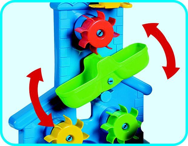 Mlýnek na písek a vodu se třemi lopatkovými koly, dělícím žlábkem a širokou základnou, vyrobený z kvalitních plastů v Itálii. Pohyblivé šoupátko pod násypkou reguluje velikost otvoru, což bádavé děti velmi ocení. Mlýnek: výška 42 cm, šířka základny 27 cm, váha: 0,50 kg. Doporučený věk od 12 měsíců.