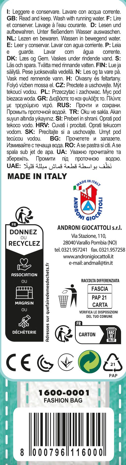 Designová plastová nákupní taška s rukojetí, vhodná i na přenášení hraček na písek. Vyrobeno z kvalitních plastů v Itálii. Rozměry složené tašky: 23 cm x 10 cm x 19 cm (š x d x v), váha 0,128 kg. Nákupní taška je dodávána v rozloženém stavu. Doporučený věk od 10 měsíců.