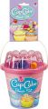 12dílná sada na písek, vyrobená z kvalitních plastů v Itálii. Obsahuje: Kyblík s víkem ve tvaru velké bábovky, tvořítko ve tvaru menší bábovky, kopečkovač na zmrzlinu, 4 čepičky zmrzlin a 4 misky. Kyblík: průměr 17 cm, výška 16 cm. Sada: výška 21 cm, váha 0,45 kg. Doporučený věk od 12 měsíců.