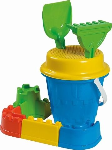 8dílná sada na písek, vyrobená z kvalitních plastů v Itálii. Obsahuje: Tvarovaný kyblík ve tvaru hradu, sítko, lopatku, hrabičky a 4 tvořítka ve tvaru hradeb. Kyblík: průměr 17 cm, výška 16 cm. Sada: výška 31 cm, váha 0,4 kg. Doporučený věk od 12 měsíců.