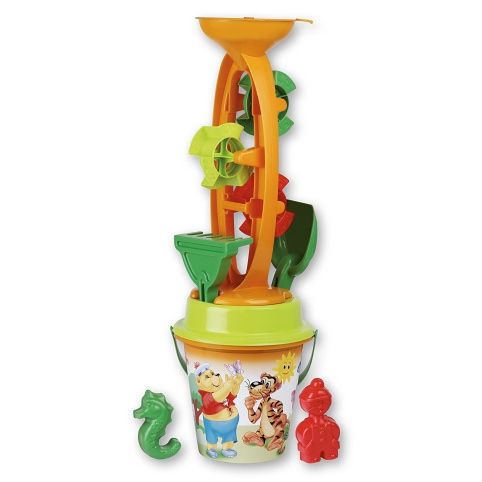 7dílná sada na písek, vyrobená z kvalitních plastů v Itálii. Obsahuje: Kyblík průměr 17 cm, výška 16 cm, sítko, lopatku a hrabičky, mlýnek se třemi lopatkovými koly výšky 40 cm a dvě tvořítka. Sada: výška 54 cm, váha 0,63 kg. Doporučený věk od 12 měsíců.