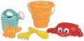 6dílná sada na písek, vyrobená z kvalitních plastů v Itálii. Obsahuje: Kyblík připomínající tvar lastury, sítko s veselým krabem, tvořítko ve tvaru kraba, konvičku, lopatku a hrabičky. Kyblík: průměr 13 cm. Sada: výška 29 cm, váha 0,33 kg. Doporučený věk od 12 měsíců.