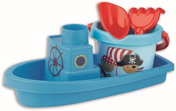 4dílná sada na písek s lodí, vyrobená z kvalitních plastů v Itálii. Obsahuje: Loďku, kyblík, lopatku a hrabičky. Loďka: délka 35 cm, šířka 16 cm. Kbelík: průměr 13 cm, výška 11 cm. Sada: 35 x 16 x 15 cm (d x š x v), váha 0,35 kg. Doporučený věk od 12 měsíců.