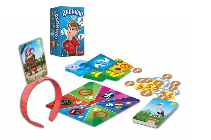 Nevíte, kdo jste? Vaši přátelé vám pomůžou! Ve hře Anonimo si jako hráč nasadíte čelenku, vytáhnete tajnou kartu, kterou vidí všichni, kromě vás. Pak si vylosujete druh nápovědy, zvolíte hráče, který je podle vás nejlepším pomocníkem, a sbíráte body za to, že se trefíte. Hra obsahuje: 56 oboustranných karet s ilustrovanými slovy/větami k uhodnutí, 4 čelenky s držáky, šipka a otočný mechanismus pro losování nápověd, 24 žetonů s body, 6 speciálních karet, návod.