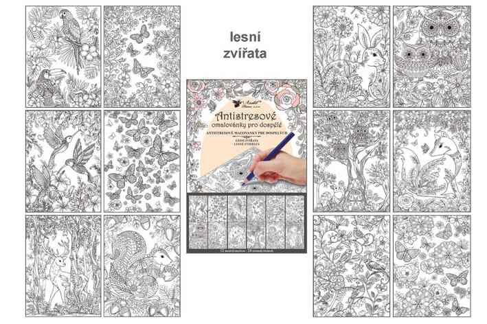 Antistresové omalovánky 12 motivů 6 stránek lesní zvířata 36,5x21,5cm