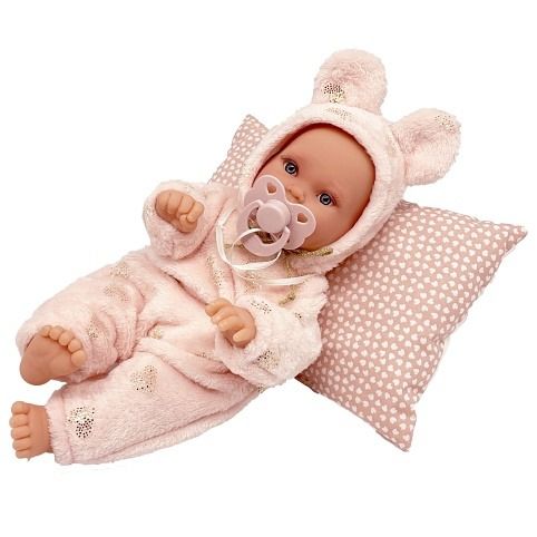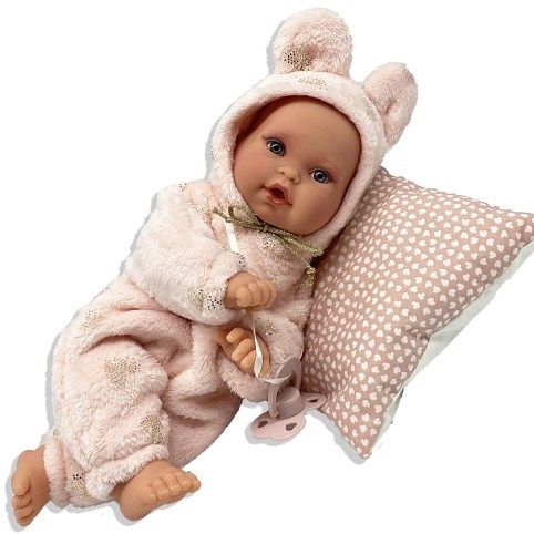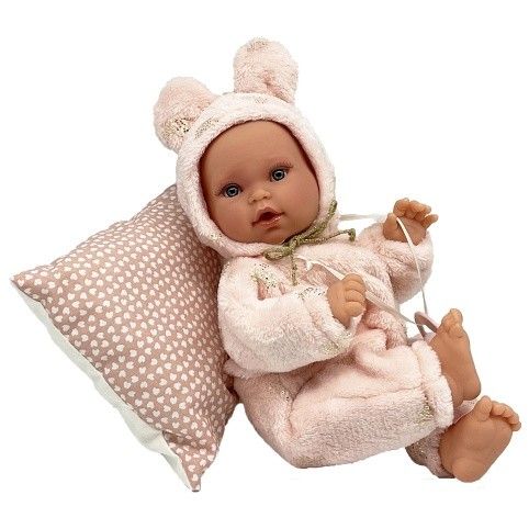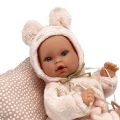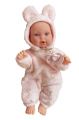 Ručně vyrobená realistická španělská panenka - miminko, se speciální pohybovou funkcí. Díky vnitřní opoře kostry těla, může dělat neobvyklé pohyby končetin, jako překřížit nožičky vleže, dát k sobě dlaně nebo zaujmat různé miminkovské polohy. Miminko má měkké látkové tělo, hlava a končetiny jsou vyrobené z kvalitního měkčeného vinylu. Oblečení některých panenek bylo vyrobeno z organické bavlny, která zaručuje výrobu z ručně sbírané, ekologicky bez chemického ošetření pěstované bavlny. Firma Antonio Juan klade velký důraz na ekologii a proto jako první využívá v tomto odvětví zmíněnou bavlnu. Velikost 27 cm. Baleno v dárkové krabici. Doporučený věk od 3 let.