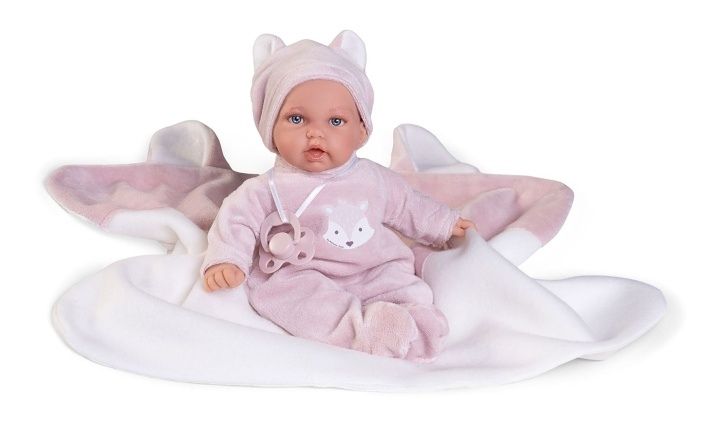 Ručně vyrobená realistická španělská panenka s měkkým látkovým tělem. Hlava a končetiny jsou vyrobené z kvalitního měkčeného vinylu. Oblečení některých panenek bylo vyrobeno z organické bavlny, která zaručuje výrobu z ručně sbírané, ekologicky bez chemického ošetření pěstované bavlny. Firma Antonio Juan klade velký důraz na ekologii a proto jako první využívá v tomto odvětví zmíněnou bavlnu. Velikost 27 cm. Baleno v dárkové krabici. Doporučený věk od 2 let.
