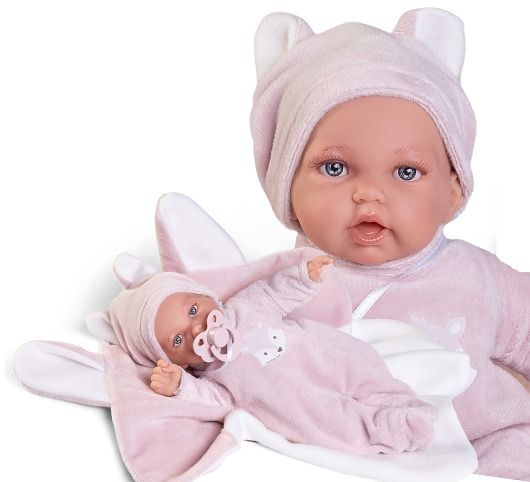 Ručně vyrobená realistická španělská panenka s měkkým látkovým tělem. Hlava a končetiny jsou vyrobené z kvalitního měkčeného vinylu. Oblečení některých panenek bylo vyrobeno z organické bavlny, která zaručuje výrobu z ručně sbírané, ekologicky bez chemického ošetření pěstované bavlny. Firma Antonio Juan klade velký důraz na ekologii a proto jako první využívá v tomto odvětví zmíněnou bavlnu. Velikost 27 cm. Baleno v dárkové krabici. Doporučený věk od 2 let.