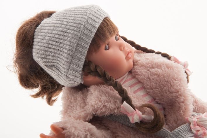 Ručně vyrobená realistická španělská panenka s celovinylovým tělem a vlásky po celé hlavě. Oblečení některých panenek bylo vyrobeno z organické bavlny, která zaručuje výrobu z ručně sbírané, ekologicky bez chemického ošetření pěstované bavlny. Firma Antonio Juan klade velký důraz na ekologii a proto jako první využívá v tomto odvětví zmíněnou bavlnu. Velikost 45 cm. Baleno v dárkové krabici. Doporučený věk od 3 let.