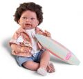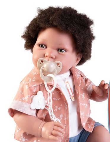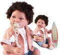 Ručně vyrobená realistická španělská panenka - miminko s realistickými prvky v obličeji a na končetinách. Ruce a nohy jsou k tělu přichycené kloubem s možností polohování, což miminku umožňuje třeba i samostatné sezení bez opory. Panenka má měkké látkové tělo, hlava a končetiny jsou vyrobené ze speciálního měkčeného vinylu, příjemného na dotek. Oblečení některých panenek bylo vyrobeno z organické bavlny, která zaručuje výrobu z ručně sbírané, ekologicky bez chemického ošetření pěstované bavlny. Firma Antonio Juan klade velký důraz na ekologii a proto jako první využívá v tomto odvětví zmíněnou bavlnu. Velikost 42 cm. Baleno v dárkové krabici. Doporučený věk od 3 let.