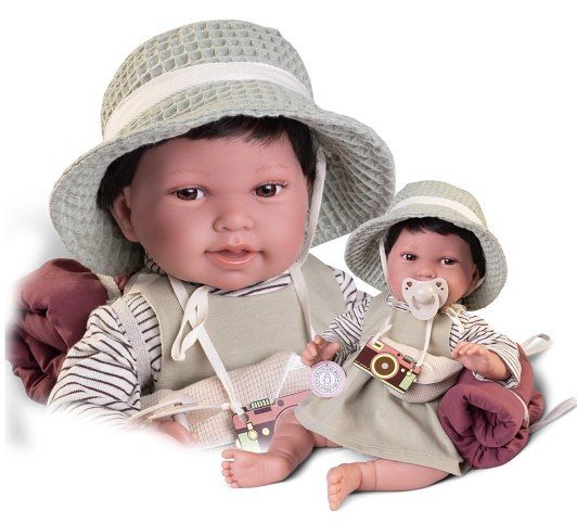 Ručně vyrobená realistická španělská panenka - miminko s realistickými prvky v obličeji a na končetinách. Ruce a nohy jsou k tělu přichycené kloubem s možností polohování, což miminku umožňuje třeba i samostatné sezení bez opory. Panenka má měkké látkové tělo, hlava a končetiny jsou vyrobené ze speciálního měkčeného vinylu, příjemného na dotek. Oblečení některých panenek bylo vyrobeno z organické bavlny, která zaručuje výrobu z ručně sbírané, ekologicky bez chemického ošetření pěstované bavlny. Firma Antonio Juan klade velký důraz na ekologii a proto jako první využívá v tomto odvětví zmíněnou bavlnu. Velikost 42 cm. Baleno v dárkové krabici. Doporučený věk od 3 let.
