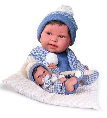 Ručně vyrobená realistická španělská panenka - miminko new born s celovinylovým tělem a realistickým vyobrazením různých miminkovských faldíků a detailů včetně pohlaví. Panenka je vyrobená ze speciálního měkčeného vinylu, velmi příjemného na dotek. Oblečení některých panenek bylo vyrobeno z organické bavlny, která zaručuje výrobu z ručně sbírané, ekologicky bez chemického ošetření pěstované bavlny. Firma Antonio Juan klade velký důraz na ekologii a proto jako první využívá v tomto odvětví zmíněnou bavlnu. Velikost 42 cm. Baleno v dárkové krabici. Doporučený věk od 3 let.