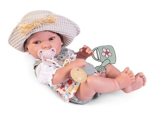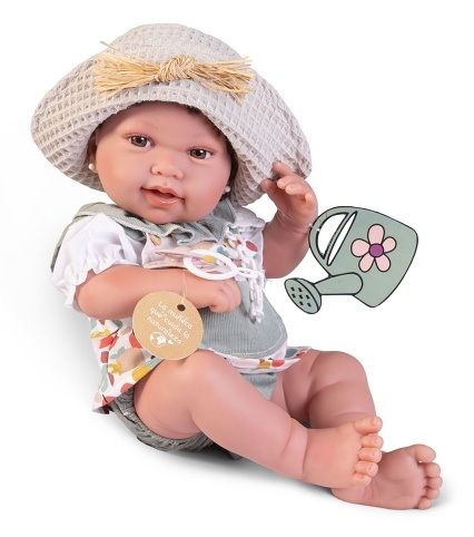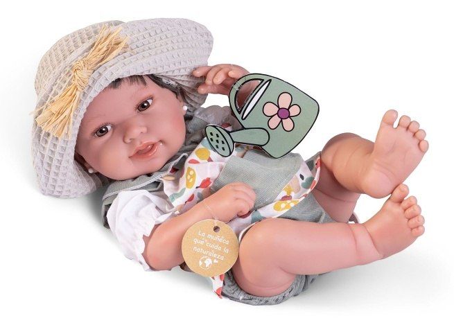Ručně vyrobená realistická španělská panenka - miminko new born s celovinylovým tělem a realistickým vyobrazením různých miminkovských faldíků a detailů včetně pohlaví. Panenka je vyrobená ze speciálního měkčeného vinylu, velmi příjemného na dotek. Oblečení některých panenek bylo vyrobeno z organické bavlny, která zaručuje výrobu z ručně sbírané, ekologicky bez chemického ošetření pěstované bavlny. Firma Antonio Juan klade velký důraz na ekologii a proto jako první využívá v tomto odvětví zmíněnou bavlnu. Velikost 42 cm. Baleno v dárkové krabici. Doporučený věk od 3 let.