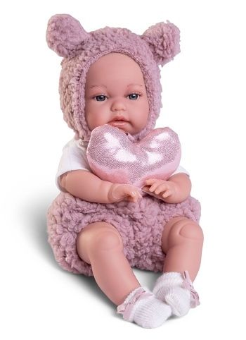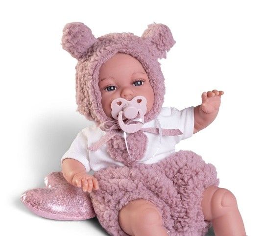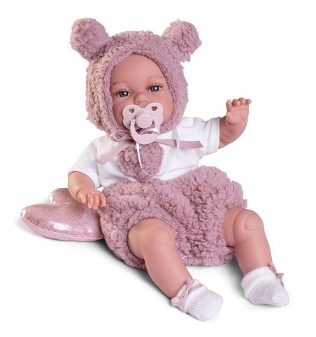 Ručně vyrobená realistická španělská panenka - miminko, se speciální pohybovou funkcí. Díky vnitřní opoře kostry těla, může dělat neobvyklé pohyby končetin, jako překřížit nožičky vleže, dát k sobě dlaně nebo zaujmat různé miminkovské polohy. Miminko má měkké látkové tělo, hlava a končetiny jsou vyrobené z kvalitního měkčeného vinylu. Oblečení některých panenek bylo vyrobeno z organické bavlny, která zaručuje výrobu z ručně sbírané, ekologicky bez chemického ošetření pěstované bavlny. Firma Antonio Juan klade velký důraz na ekologii a proto jako první využívá v tomto odvětví zmíněnou bavlnu. Velikost 34 cm. Baleno v dárkové krabici. Doporučený věk od 3 let.
