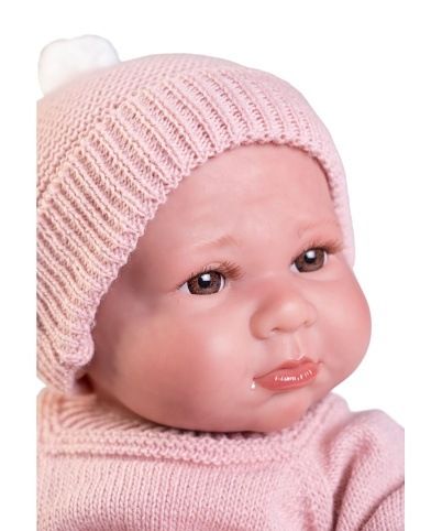 Ručně vyrobená realistická španělská panenka - miminko Reborn s některými ručně dokreslovanými detaily jako jsou: vlásky, nehtíky, žilky, obočí, načervenalá pokožka v záhybech atd. Jeho tělíčko má speciální úpravu kůže, aby byla lehce ochmýřená. Nesmí se dostat do kontaktu s vodou vzhlem k ruční malbě a použití akrylových barev. Má certifikát o původu - rodný list a váží 2 255 gr. Panenka má měkké látkové tělo, hlava a končetiny jsou vyrobené z kvalitního měkčeného vinylu. Oblečení některých panenek bylo vyrobeno z organické bavlny, která zaručuje výrobu z ručně sbírané, ekologicky bez chemického ošetření pěstované bavlny. Firma Antonio Juan klade velký důraz na ekologii a proto jako první využívá v tomto odvětví zmíněnou bavlnu. Velikost 42 cm. Baleno v dárkové krabici. Tato panenka není klasicku hračkou pro malé děti, doporučený věk od 14 let.
