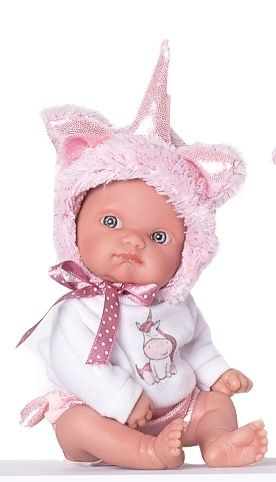 Antonio Juan 85105-3 Jednorožec růžový - realistická panenka miminko s celovinylovým tělem