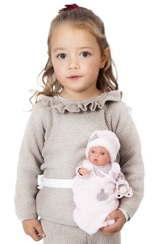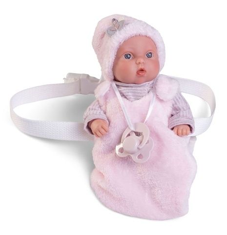 Ručně vyrobená realistická španělská panenka - miminko new born s celovinylovým tělem a realistickým vyobrazením různých miminkovských faldíků a detailů včetně pohlaví. Panenka je vyrobená ze speciálního měkčeného vinylu, velmi příjemného na dotek. Miminko lze koupat. Oblečení některých panenek bylo vyrobeno z organické bavlny, která zaručuje výrobu z ručně sbírané, ekologicky bez chemického ošetření pěstované bavlny. Firma Antonio Juan klade velký důraz na ekologii a proto jako první využívá v tomto odvětví zmíněnou bavlnu. Velikost 21 cm. Součástí balení je i vak na nošení kolem pasu. Baleno v dárkové krabici. Doporučený věk od 2 let.