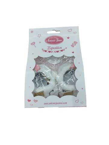Botičky - papučky pro panenku miminko velikosti 40 - 52 cm. Délka boty 7,5 cm. Ručně vyrobeno v Číně. Baleno v ozdobném kartonovém obalu s okýnkem s možností zavěšení. Doporučený věk od 3 let.