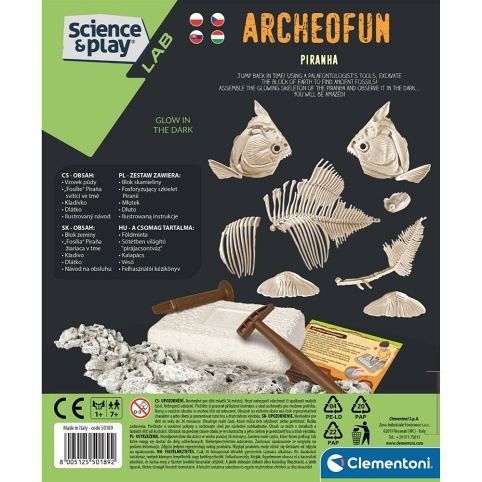 Archeologická sada otevírá dětem dveře do světa paleontologie, kde se mohou stát skutečnými paleontology a prozkoumat kostru dravé ryby – piraně. S pomocí přiložených nástrojů mohou pečlivě opracovávat kámen a objevovat kosti, které následně složí dohromady a vytvoří svítící kostru piraně. Připravte se na dobrodružství plné objevů a zářivých výsledků s touto úžasnou archeologickou sadou.
