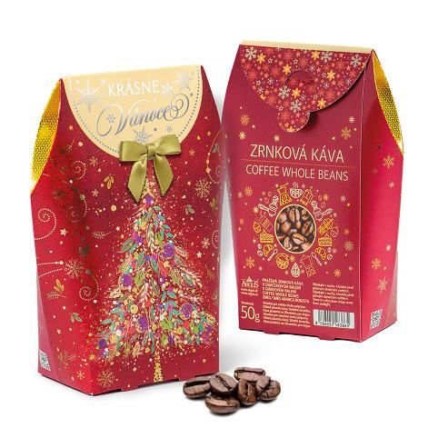 Pražená zrnková káva v luxusní dárkové krabičce s vánočním motívem a mašličkou. Vhodná jako dárek. Krabička kávy obdarovaného okouzlí nejen výbornou chutí, ale také krásným a originálním zevnějškem. Obsahuje 50g kávy, směs arabika robusta vysoké kvality. Kávu dodává rodinná pražírna Classic coffe, která na území města Piešťany na Slovensku působí od roku 1993.