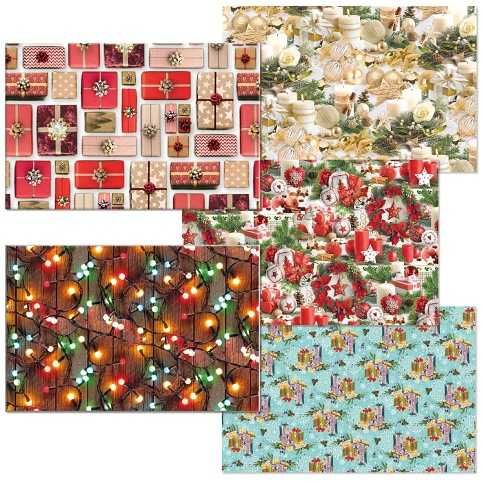 Balící papír s vánočním motivem. Jednostranný potisk. Arch o rozměrech 100x70 cm. Mix box 80ks.