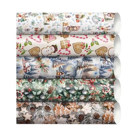 Balící papír s vánočním motivem. * jednostranný potisk* rolka obsahuje 2 archy o rozměrech 100x70 cm* mix box 80ks, cena na eshopu je za 1ks* tento box balícího papíru je určen pro B2B zákazníky a není možné na eshopu objednávat 1ks - rolku