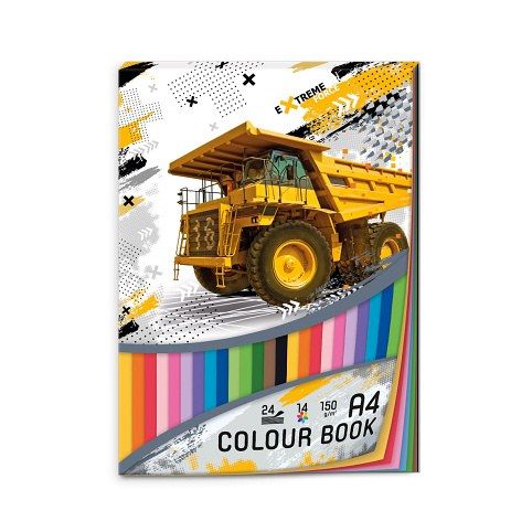Blok barevného papíru velikosti A4 Extreme force. Blok obsahuje 24 barevných listů v 14 barvách. List barevného papíru váží 150g. Vhodné jsou na výtvarní výchovu a kreativní tvoření zvláště pro pevnější gramáž papíru.