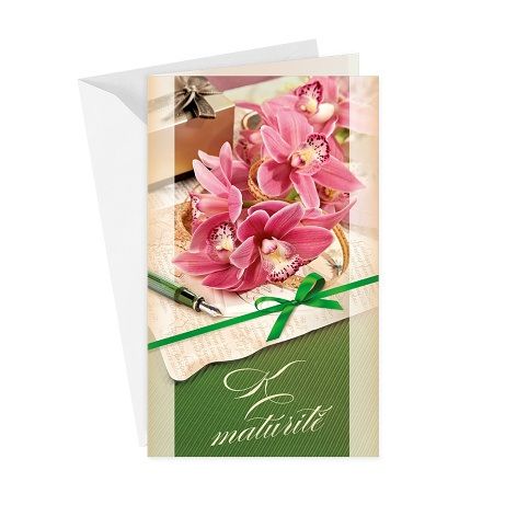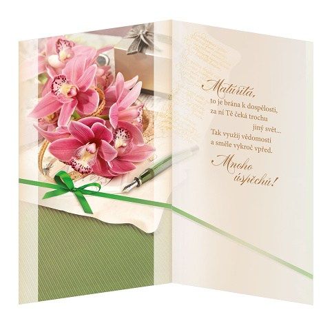 Přání a gratulace k maturitě s textem uvnitř. Součástí blahopřání je barevně sladěná obálka. Originální technologie zpracování od společnosti ARGUS - "Na detailu záleží!"