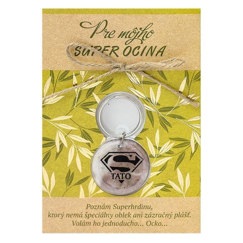 Pre môjho SUPER OCINA - speciální přání s dárkem. Karta obsahuje obálku, dárek - klíčenku s oboustranným potiskem a věnování. Slovenský text uvnitř přání: "Si ten najlepší TATINO pod slnkom!"